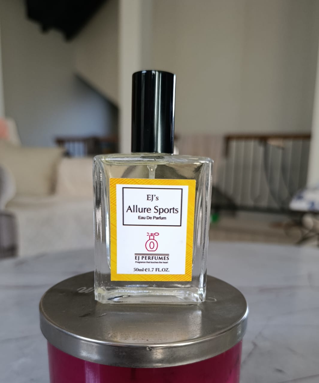 Allure Homme Sport by EJ Perfumes is a Woody Spicy fragrance for men. Top notes are Orange, Sea Notes, Aldehydes and Blood Mandarin; middle notes are Pepper, Neroli and Cedar; base notes are Vanilla, Tonka Bean, White Musk, Amber, Vetiver and Elemi resin.